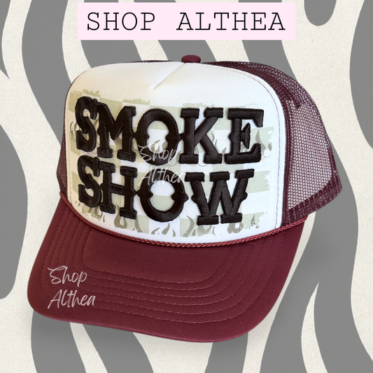Black "Smoke Show" Embroidered Puff Transfer